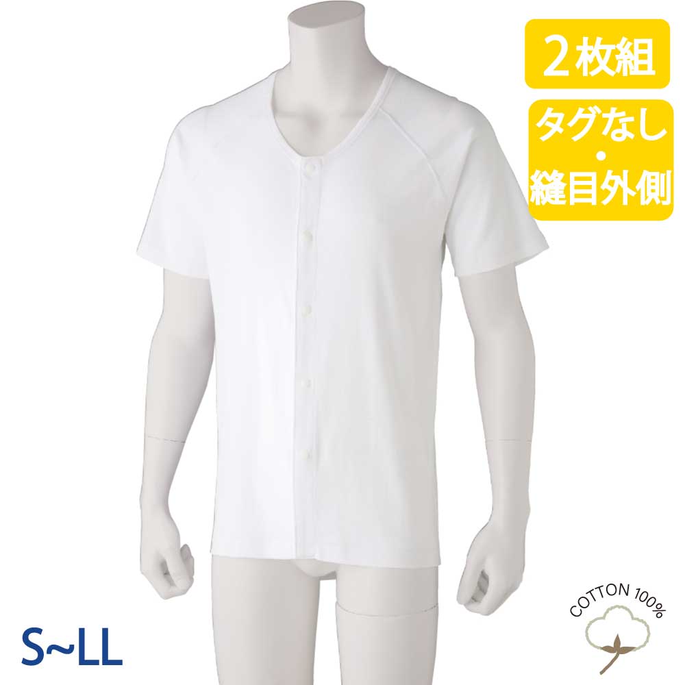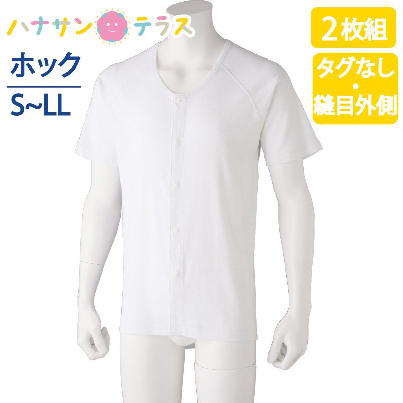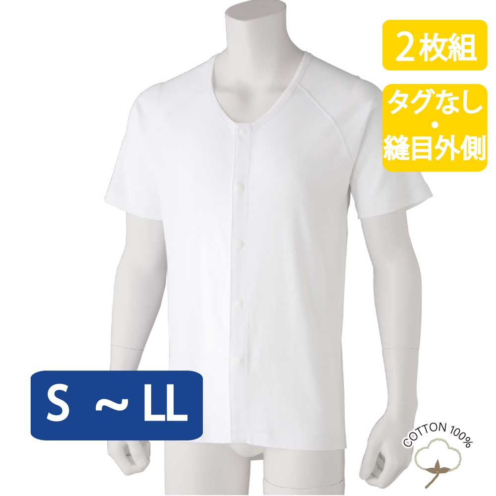 ワンタッチ肌着 下着 前開き メンズ 紳士 用 綿100% 介護 プラスチックホックシャツ インナー シャツ 半袖 2枚セット春 夏 秋 冬 S M L LL 介護用 肌着 介護下着 高齢者 男性 シニア
