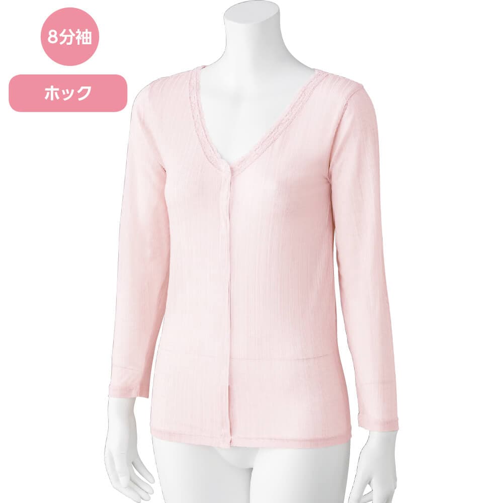 ホック 8分袖 おしゃれ スナップボタン シルク混 下着 リハビリ 介護衣料 介護用 入院用 母の日 敬老の日 誕生日 入所 入院 シニア ワンタッチ肌着 インナー シャツ インナーシャツ