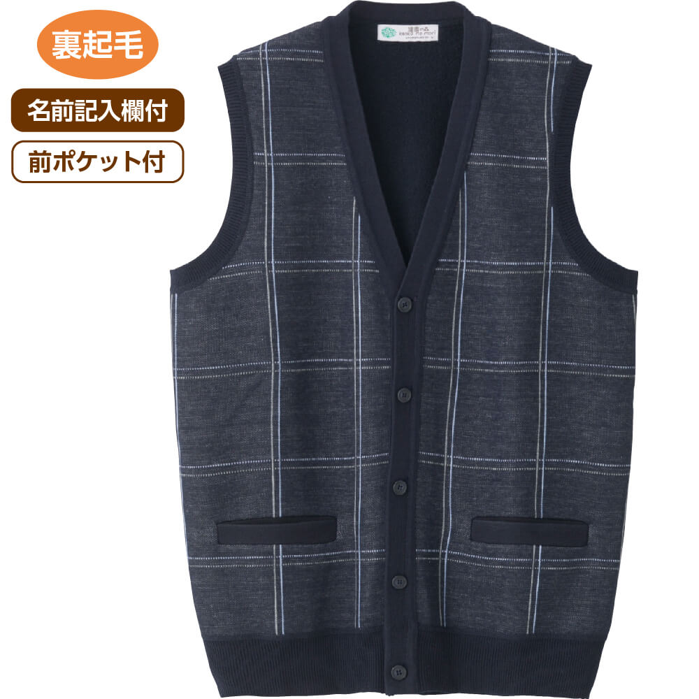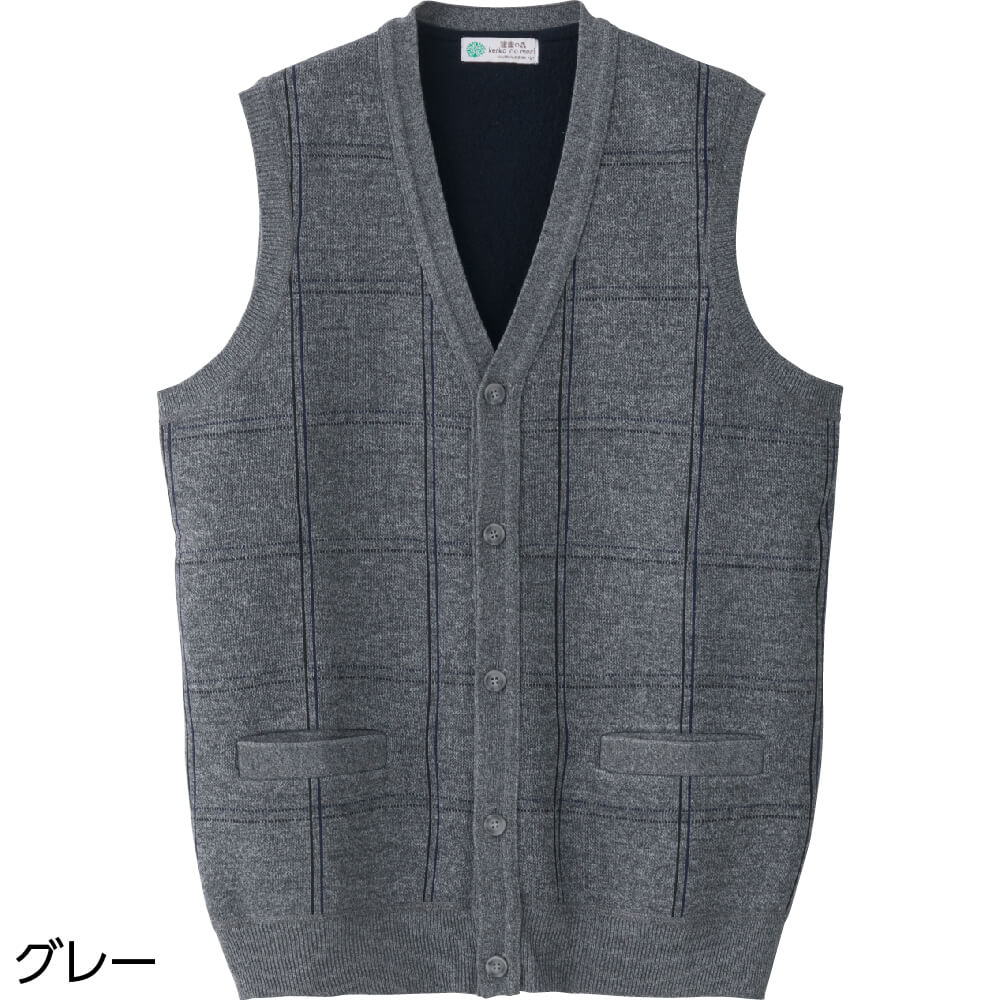 裏起毛斜め釦ホール前開きベスト 大きめボタン 斜めボタンホール M L LL 大きめボタン 斜めボタンホール シニアファッション 70代 80代 90代 100歳 メンズ 紳士 用