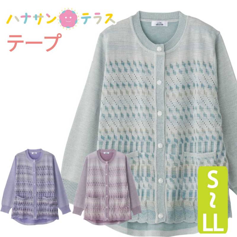 カーディガン 長袖 ワンタッチテープ 丸首 ニット シニアファッション 80代 70代 90代 レディース 春 夏 涼しい おしゃれ かわいい 爽やか M ~ L S LL ジャカード シニア 服 高齢者 女性 60代 普段着 部屋着 ホームウェア おしゃれ着 外出着 婦人 用3,278(税込)